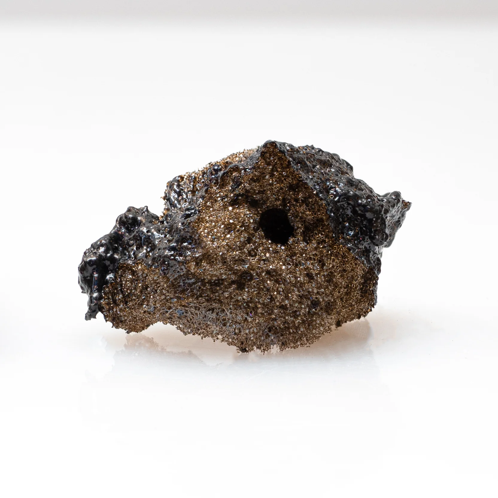 This specimen is a product of the violent 2018 lower Puna eruption in the East Rift Zone of Mount Kīlauea in Hawaiʻi. The eruption began on May 3, 2018, with the collapse of the Puʻu ʻŌʻō eruptive vent. As the summit of Mount Kīlauea deflated, more than 1 billion cubic yards of red hot lava rushed into the East Rift Zone, one of two series of cracks and fissures. The event ended eight months later, capping the decades-long eruption of Mount Kīlauea which began in 1983.