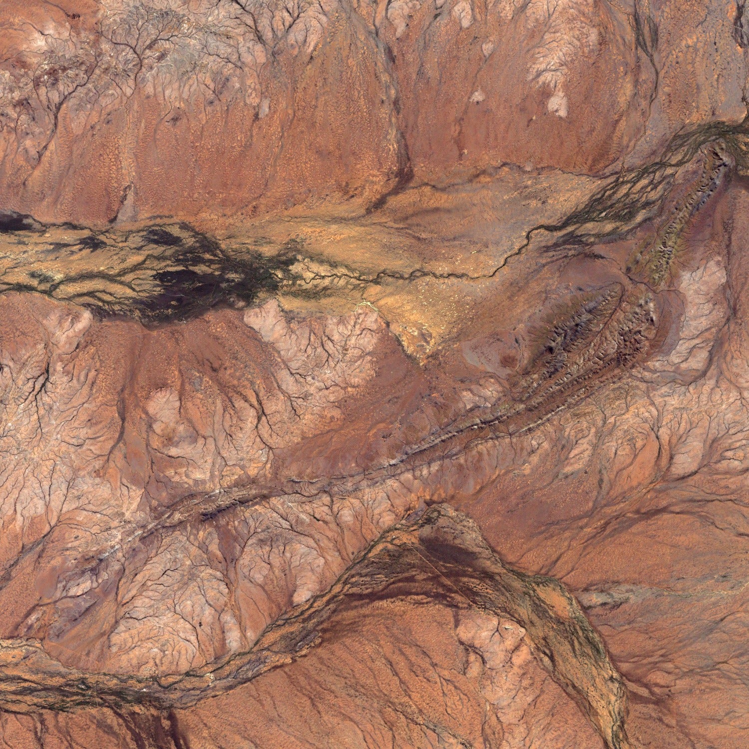 This specimen is a small piece of the Jack Hills formation north of Perth in Western Australia (pictured above). The rough, sedimentary layers of the Jack Hills formation are 3.3 billion years old, but they also contain much older zircon crystals across a range of time from 3.6 to nearly 4.4 billion years old.