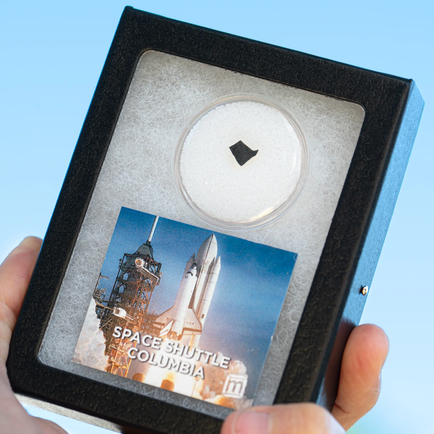 NASA disposition paperwork accompanying the tile indicates it was removed after the Space Shuttle Columbia’s 7th mission, STS-61-C, which flew on January 12, 1986.